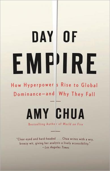 Chua史无前例的历史知识向我们展示了一个迷人的模式。对于他们所有的不同之处,她认为,每一个支配世界的力量曾经最起码按照它那个时期的标准,是非常具有兼容性和包容性的。每个团体都继承了包容的风格,他们都能结合并运用来自不同背景的个人的技术及能力,他们也都会去吸引和挖掘被其他社会团体所排斥的高天分的群体。因此,罗马会让非洲人,西班牙人及高卢人登上权利的最高峰;而未开化的蒙古人仅靠他们在当时代没有的那种对道德和宗教的包容就征服了那辽阔的土地。而相反的,对种族和宗教的不包容就直接导致了德国纳粹和日本帝国,在扩增他们的领土时未能获得全球支配地位。